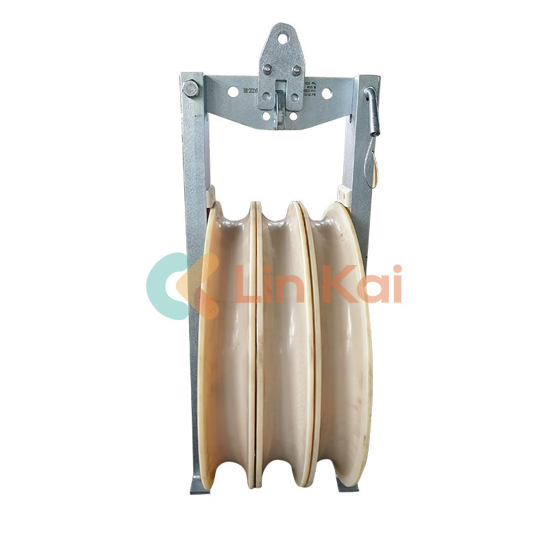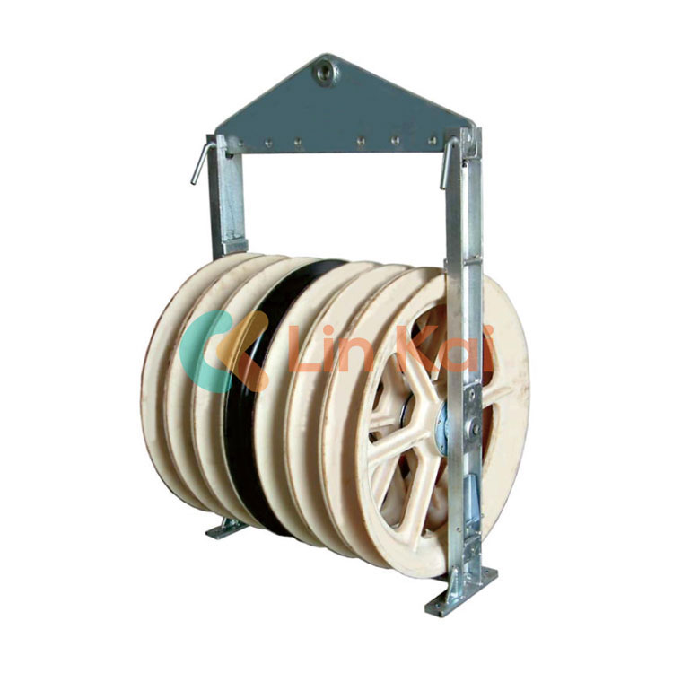 Блокови со жици со голем дијаметар од 750 mm, произведени во Кина, се идеални за нанижување на два, три, четири или пет нанижани проводници од алуминиум и ACSR Max 630 на тангенцијални конструкции. Компресивните чаури, вртливите врски и конекторите за влечење на јажето може да се вклопат во блок жлебот од 750 mm.