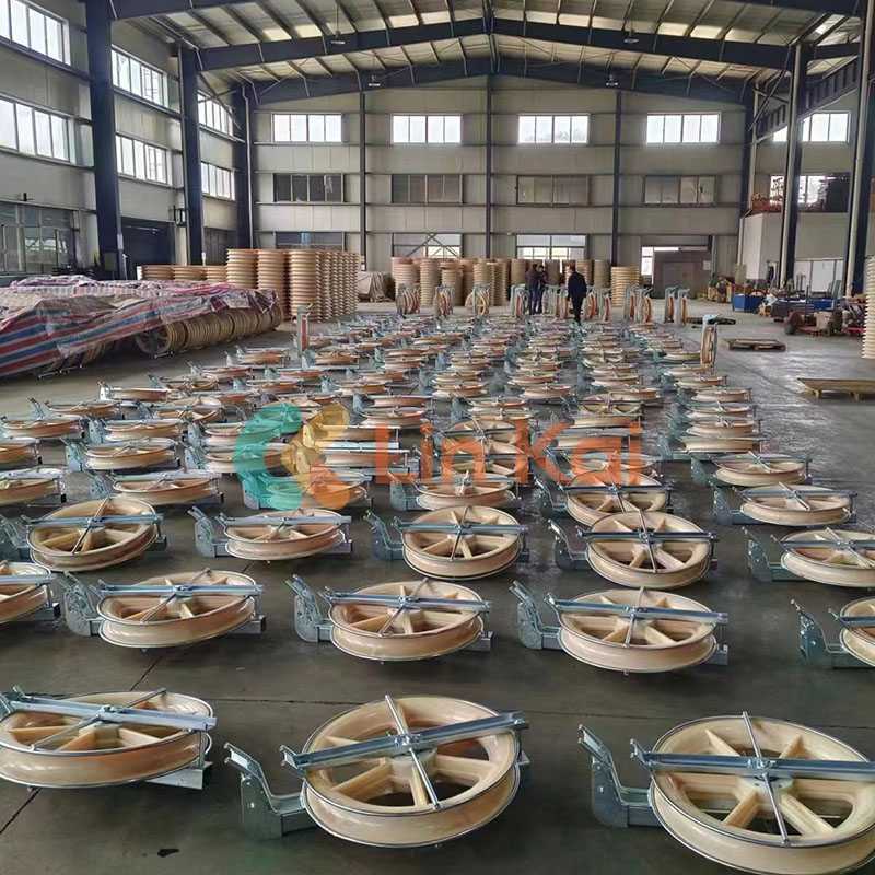 Блокови за жици со проводници на хеликоптери произведени од фабриката Ningbo Lingkai се погодни за нанижување на пилотското јаже со хеликоптер. Пилот-јажето автоматски се поставува на централното тркало. Блокови за жици за хеликоптерски жици може да бидат MC најлонски тркала со голем дијаметар од 508 mm, 660 mm и 916 mm. Ningbo Lingkai надземни проводнички жици блокови за производство може да продаваат на големо блокови за жици за проводници за хеликоптери, и калем од алуминиумска легура и најлонски калем, и двете можат да бидат обложени со гума.